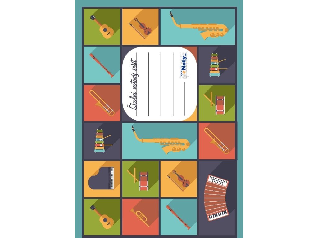 Školní notový sešit se 16 stranami a šesti notovými řádky na stránce je určen pro výuku hudby. Obsahuje pomocné linky i nápovědu základů hudební nauky.